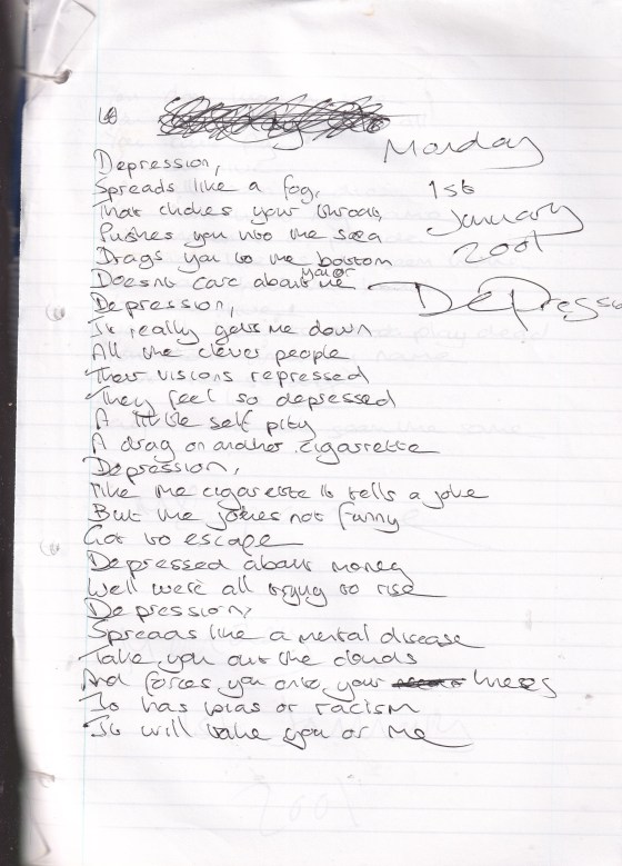 Depression – Written Monday 1st January 2001 (Aged 25)