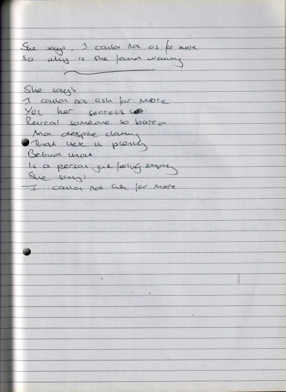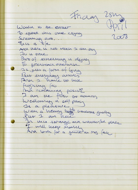 Feelings Have Taken Me Hostage – (Originally Untitled) – Wednesday 30th April 2008