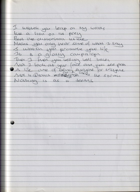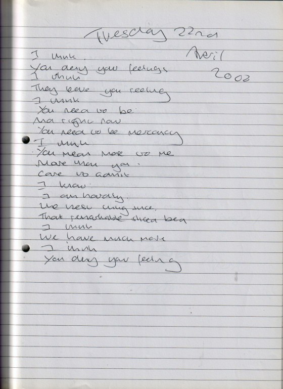 Leap On My Words (Untitled and Unfinished Piece) – Tuesday 22nd April 2008