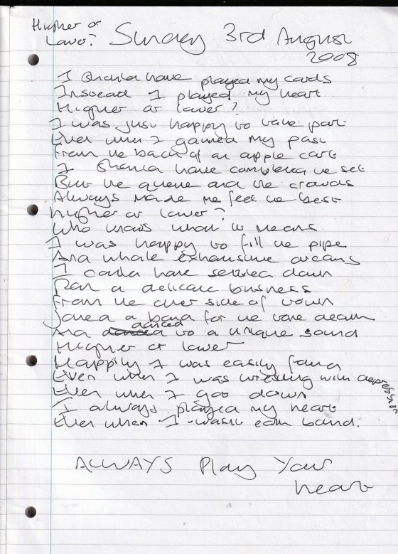 Always Play Your Heart – Written Sunday 3rd August 2008 (Aged 33)
