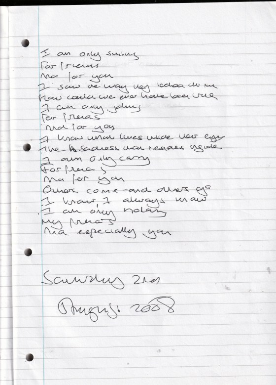 I Am Only Smiling for Friends and You – Written Saturday 2nd August 2008 (Aged 33)