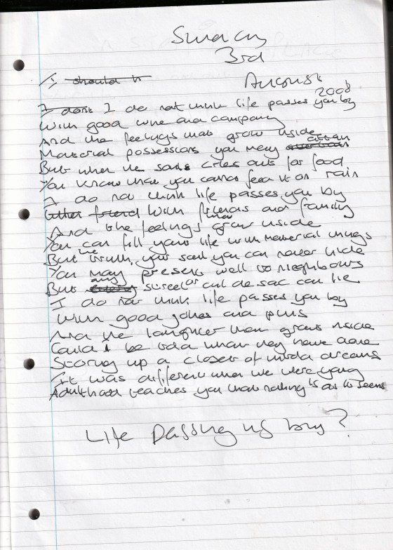 Life Passing Us By? – Written Sunday 3rd August 2008 (Aged 33)