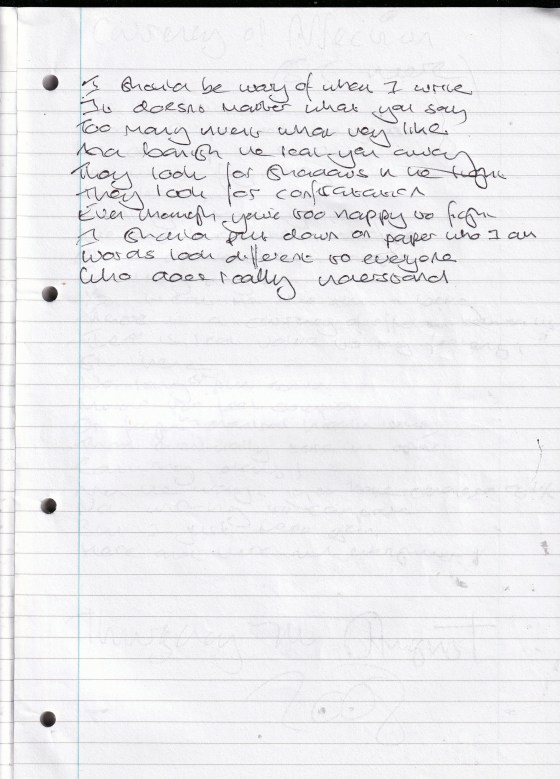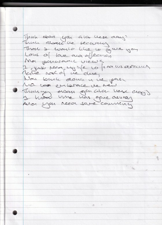 Lots of Love and Affection – Written August 2008 (Aged 33)