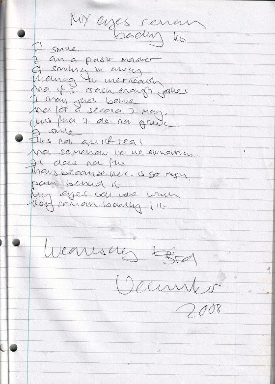 The Look Upon My Face – Written Wednesday 3rd December 2008 (Aged 33)