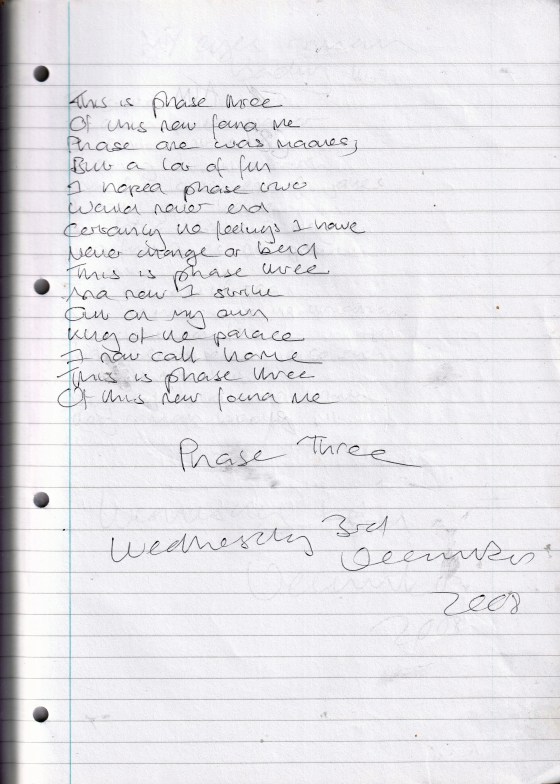 Phase Three – Written Wednesday 3rd December 2008 (Aged 33)