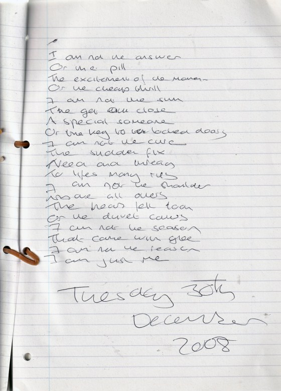 I Am Not the Answer (Originally Untitled) – Written Tuesday 30th December 2008 (Aged 33)