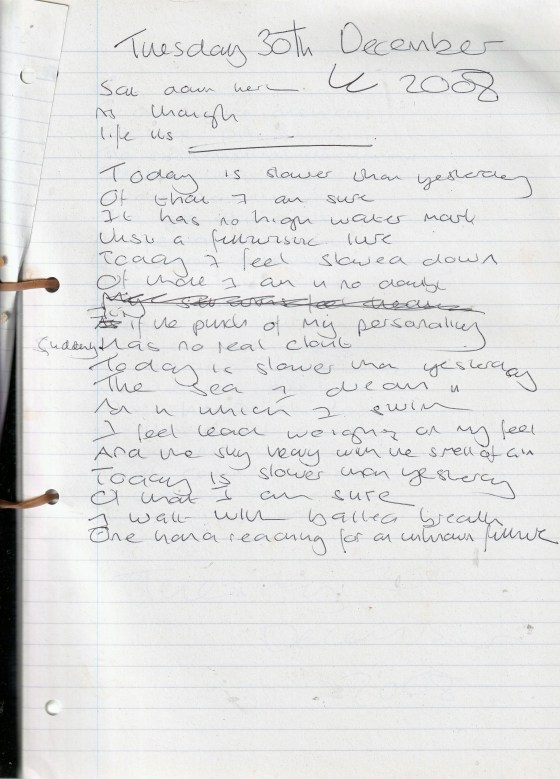 Today is Slower Than Yesterday – Written Tuesday 30th December 2008 (aged 33)