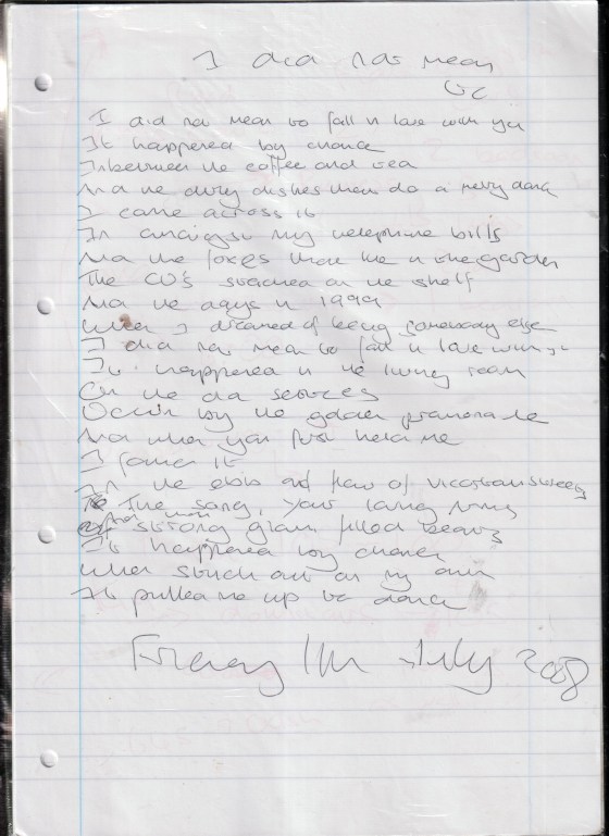 I Did Not Mean To – Written Friday 11th July 2008 (Aged 33)