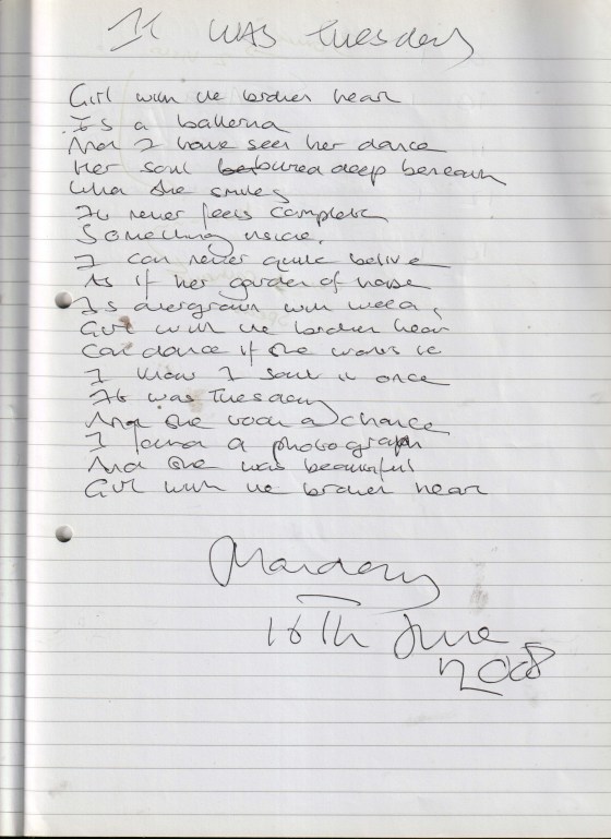 It Was Tuesday – Written Monday 16th June 2008 (Aged 33)