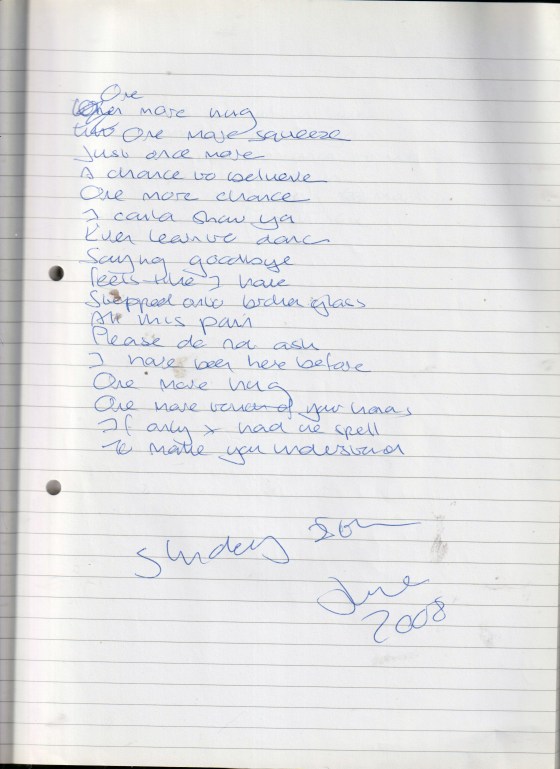 One More – Written Sunday 8th June 2008 (Aged 33)
