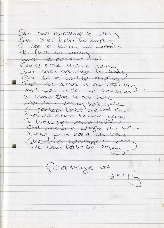 Goodbye to Jenny – Written June 2008 (Aged 33)