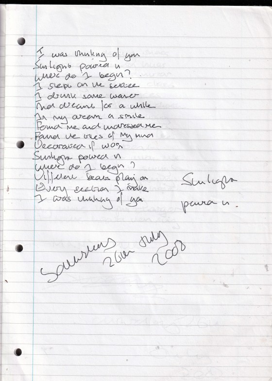 Sunlight Poured In – Written Saturday 26th July 2008 (Aged 33)