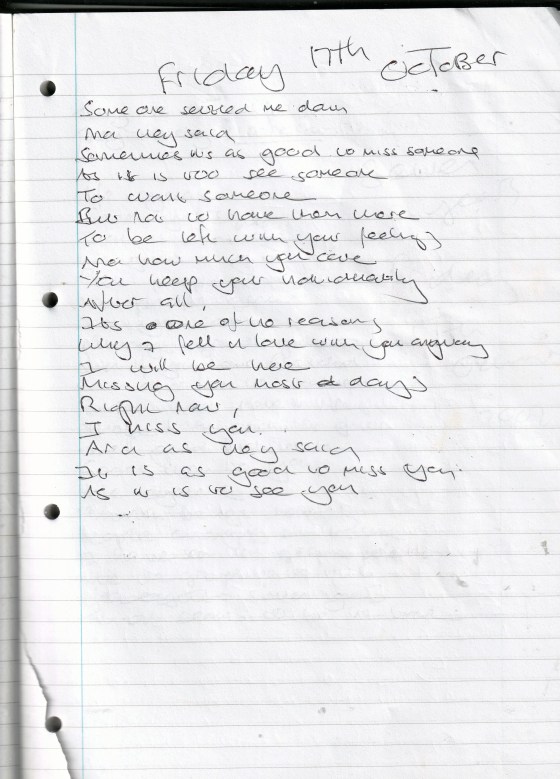 Someone Settled Me Down – Written Friday 17th October 2008 (Aged 33)