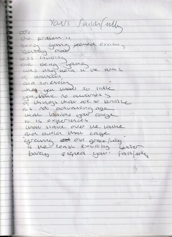 Yours Faithfully the problem is –being young seemed to be exciting ‘getting older’,less inviting but being young –was only held … More