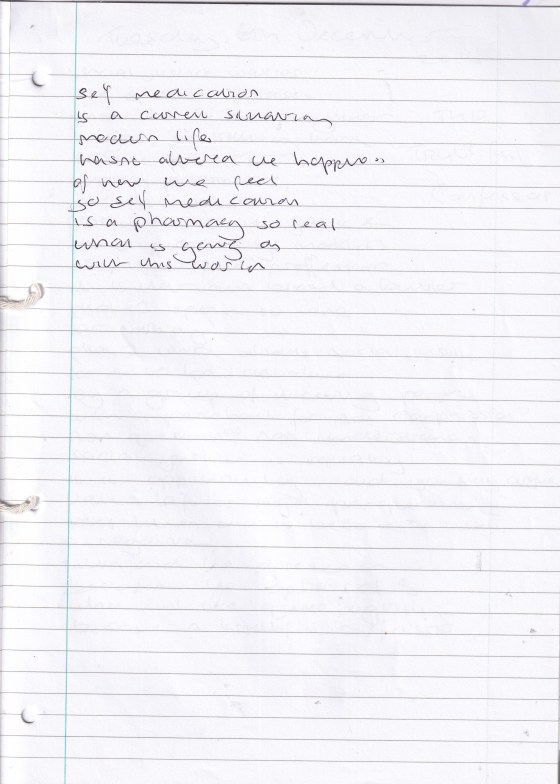 Self Medication (Originally Untitled) – Writtend December 2016 (Aged 41)
