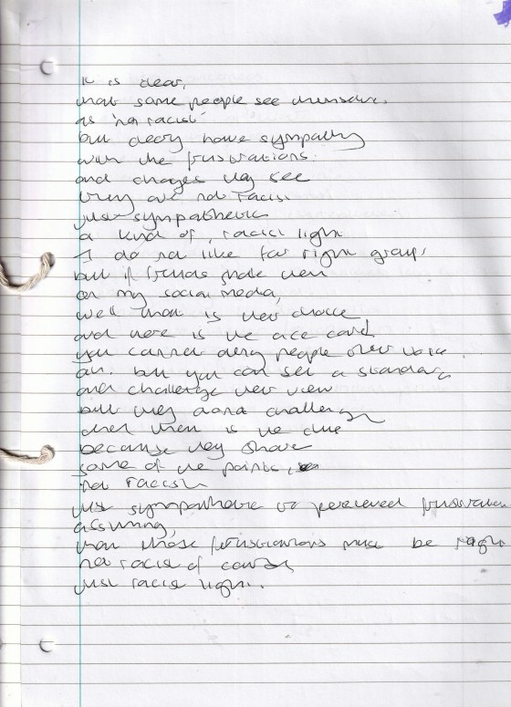 Racist Narratives (Originally Untitled) – Written Thursday 15th December 2016 (Aged 41)