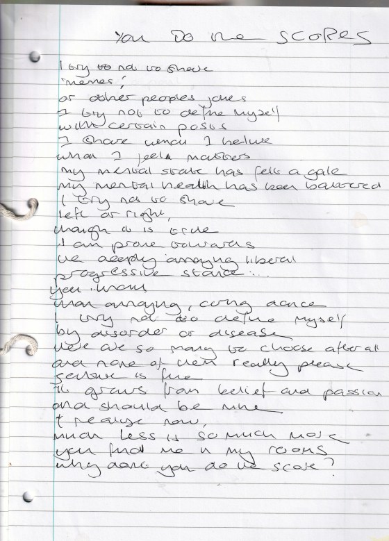 You Do the Scores – Written Wednesday 7th December 2016 (Aged 41)