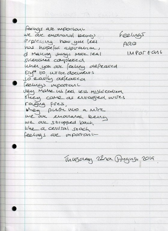 Feelings Are Important – Thursday 22nd August 2019