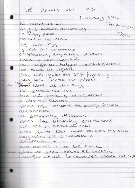 He Smiles at Us – Written Monday 16th December 2019 (Aged 44)