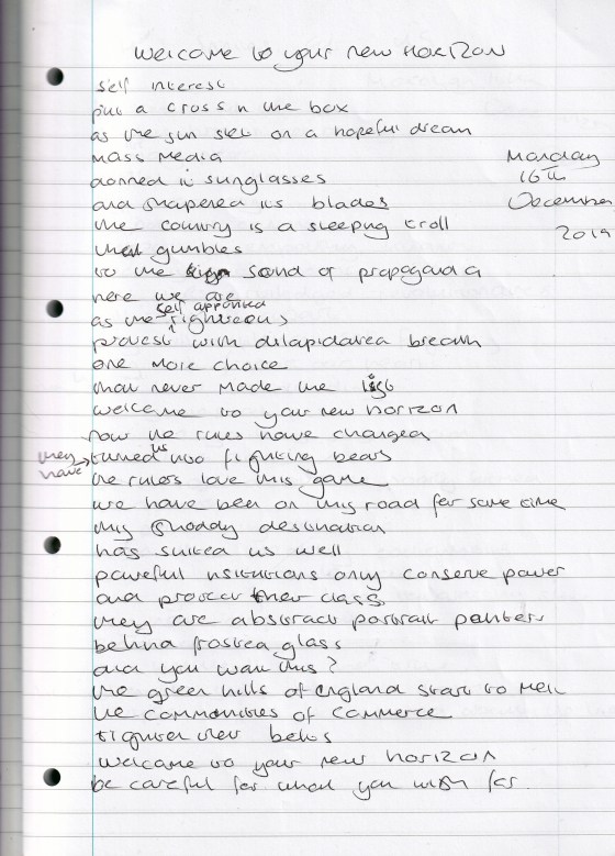 Welcome To Your New Horizon – Written Monday 16th December 2019 (Aged 44)