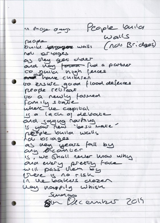 People Build Walls (Not Bridges) – Written Sunday 8th December 2019 (Aged 44)
