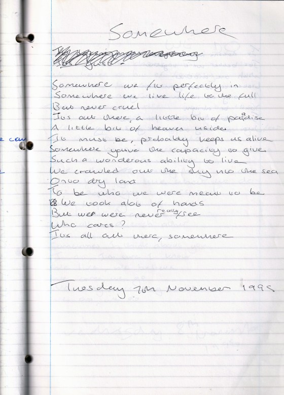 Somewhere – Written Sunday 7th November 1995 (Aged 20)