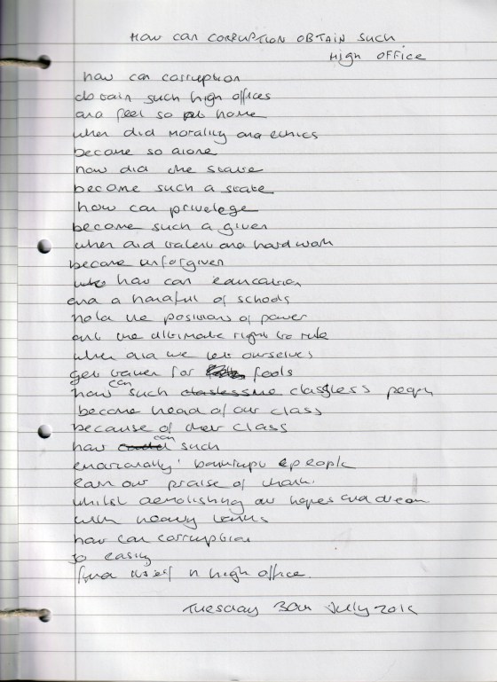 How Can Corruption Obtain Such High Office? – Tuesday 30th July 2019