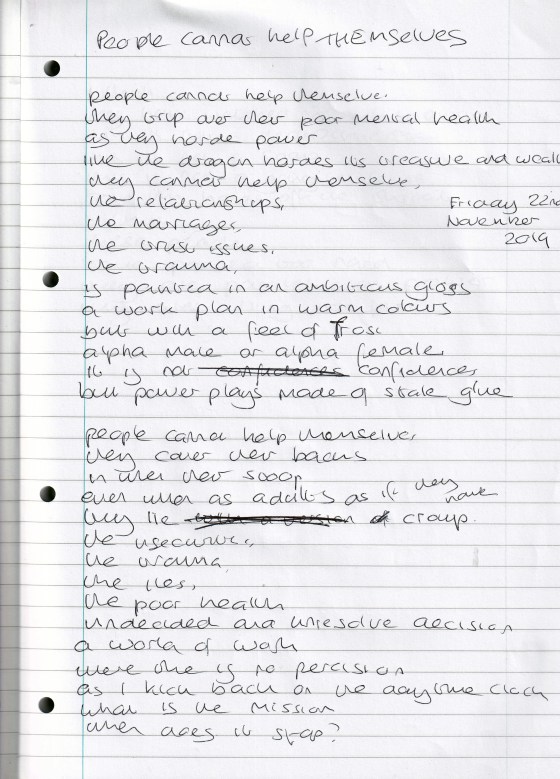 People Cannot Help Themselves – Written Friday 22nd November 2019 (Aged 44)