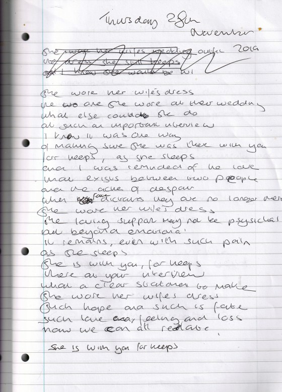 She Wore Her Wife’s Dress – Written Thursday 28th November 2019 (Aged 44)