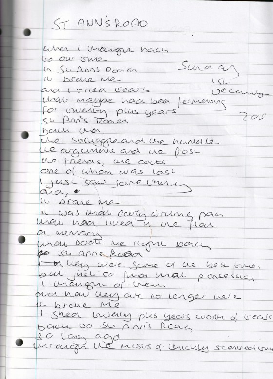 St Ann’s Road – Written Sunday 1st December 2019 (Aged 44)