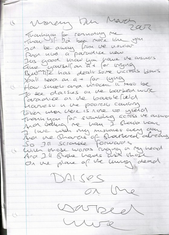Daisies On The Barbed Wire – Written Monday 17th March 2003 (Aged 28)