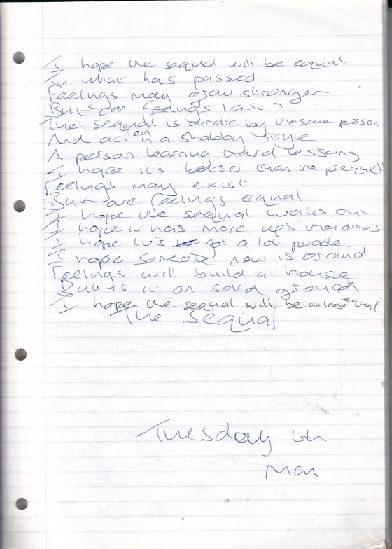 The Sequel – Written Tuesday 4th May 1999 (Aged 24)