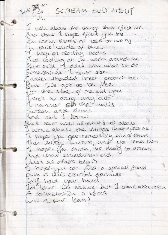 Scream and Shout – Written Saturday 29th October 1994 (Aged 19)