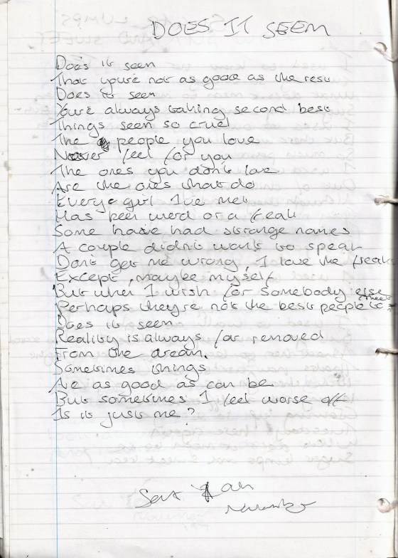 Does It Seem – Written Saturday 19th November 1994 (Aged 19)