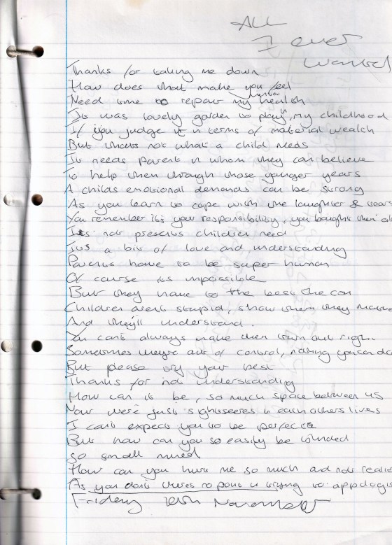 All I Ever Wanted – Written Friday 10th November 1995 (Aged 20)