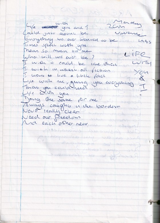 Life With You and I – Written Monday 20th November 1995 (Aged 20)