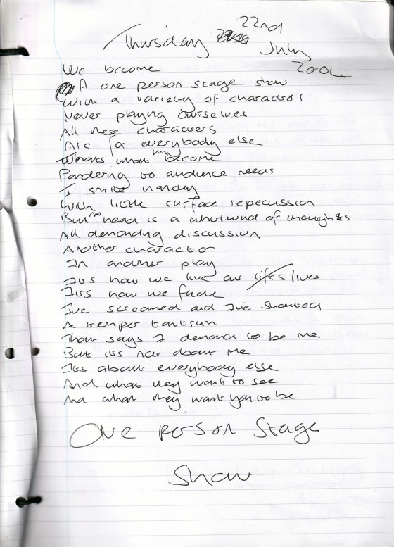 One Person Stage Show – Written Thursday 22nd July 2004 (aged 29)