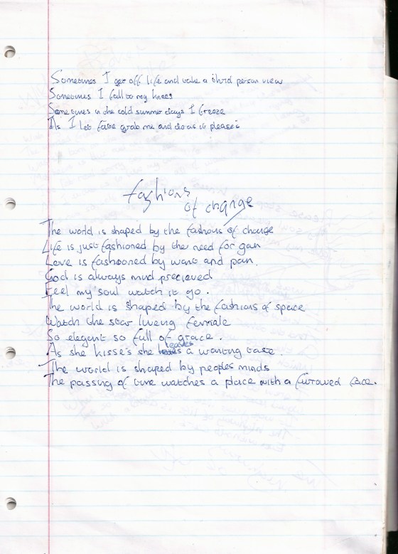 Fingers are Losing Touch – Written December 1992 (Aged 17)