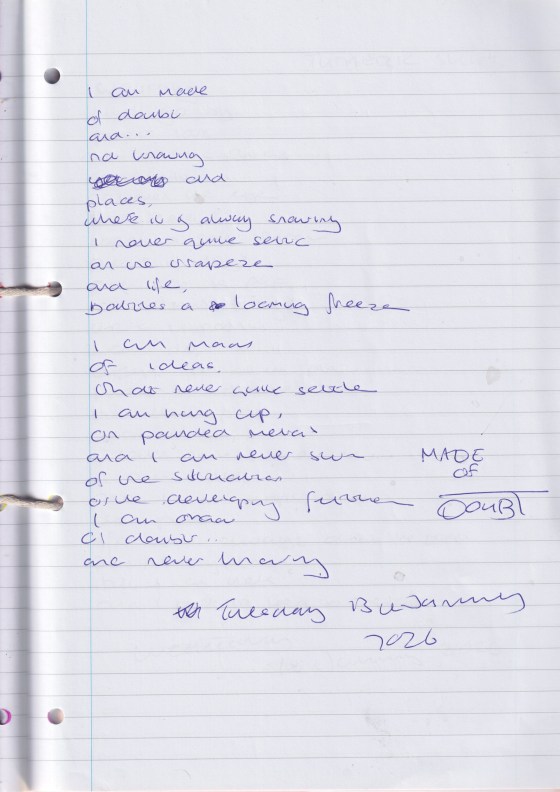 Made of Doubt – Written Tuesday 13th January 2026 (Aged 50)