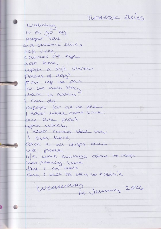 Turmeric Skies – Written Wednesday 14th January 2026 (Aged 50)