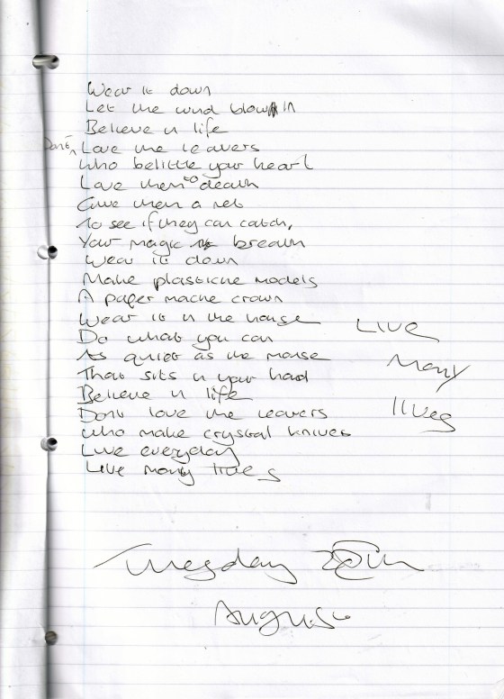 I Will Add the Lime – Written Tuesday 28th August 2001 (Aged 26)