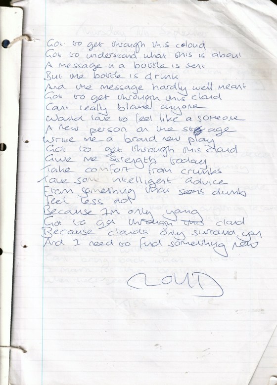 Cloud – Written Thursday 7th September 2000 (Aged 25)