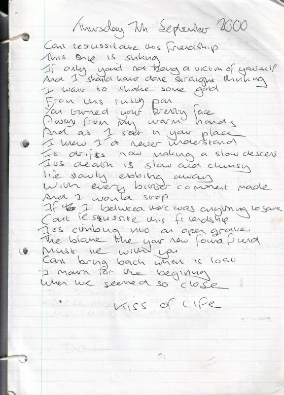 Kiss of Life – Written Thursday 7th September 2000 (Aged 25)
