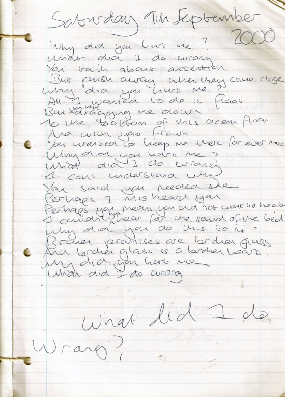 What Did I Do Wrong? – Written Saturday 9th September 2000 (Aged 25)