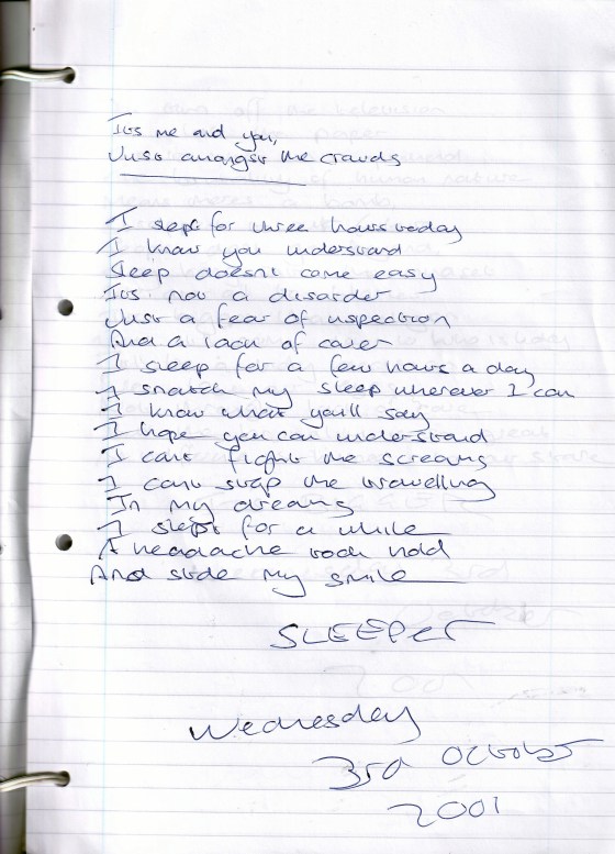 Sleeper – Written Wednesday 3rd October 2001 (Aged 26)