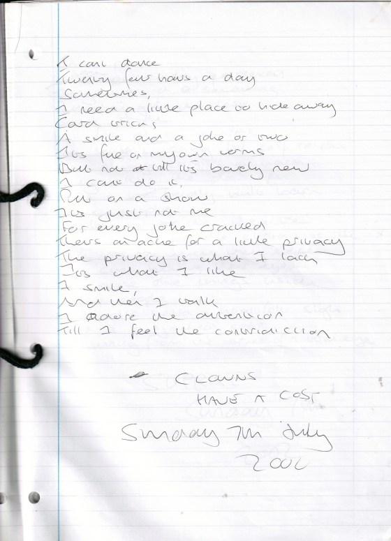 Clowns Have a Cost – Written Sunday 7th July 2002 (Aged 27)