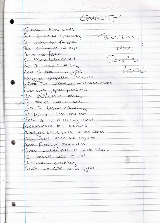 Cruelty – Written Thursday 19th October 2006 (Aged 31)