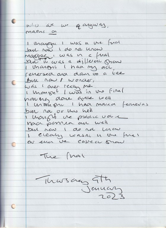 The Final – Written Thursday 9th January 2025 (Aged 49)
