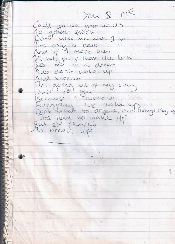 You and Me – Written Approx. Late 1993 or January 1994 (Aged 18)