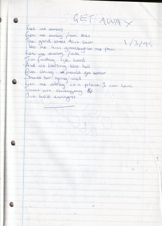 Get Away – Written Wednesday 1st March 1995 (Aged 20)